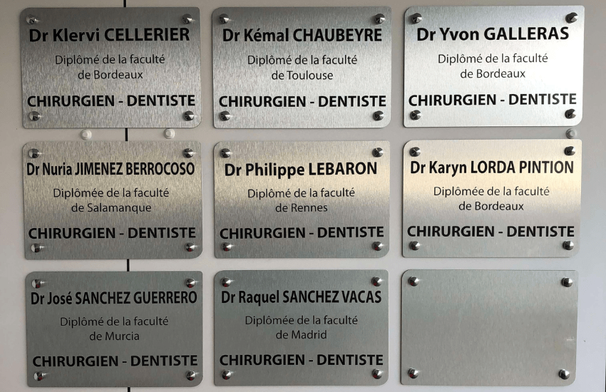 La plaque gravée est essentiellement utilisée par les professions libérales ou règlementées, comme les médecins, infirmiers libéraux, kinésithérapeutes, chirurgiens, dentistes, avocats, notaires, experts-comptables, géomètres, etc. Elle leur permet d’indiquer la présence de leur cabinet médical ou de leur étude dans un immeuble privé ou un local d’entreprises. La plaque pro est aussi une façon élégante d’habiller une façade, une porte ou un mur.